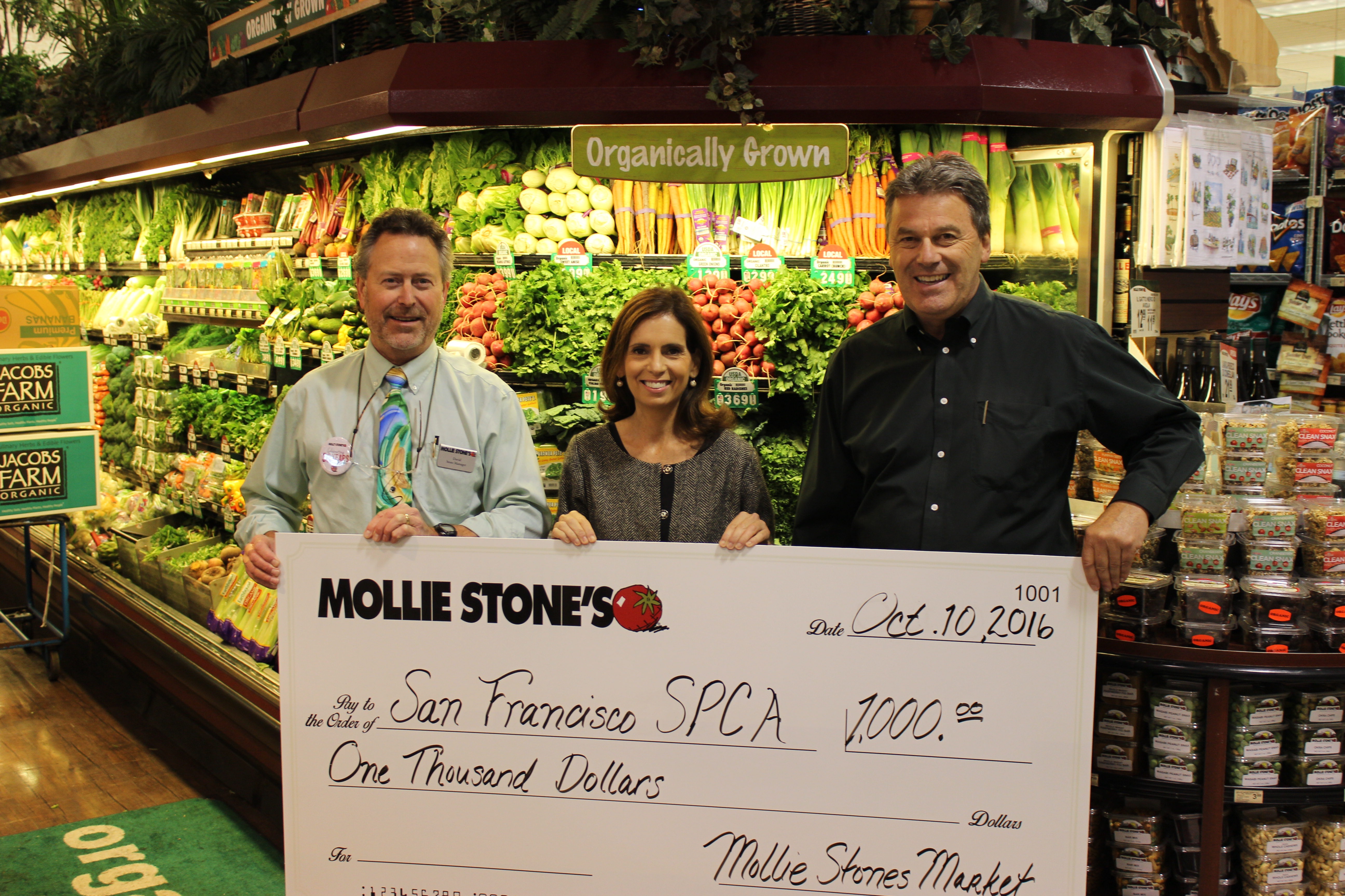 Pictured Above: The San Francisco SPCA with Grand Central store manager, David Parrisher, and Mollie Stone’s COO, Steve Stamos