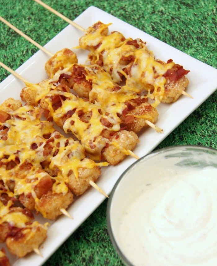Step up your tator tot game with this yummy recipe from Made with Happy. Get the recipe for Loaded Tator Tot Skewers here.